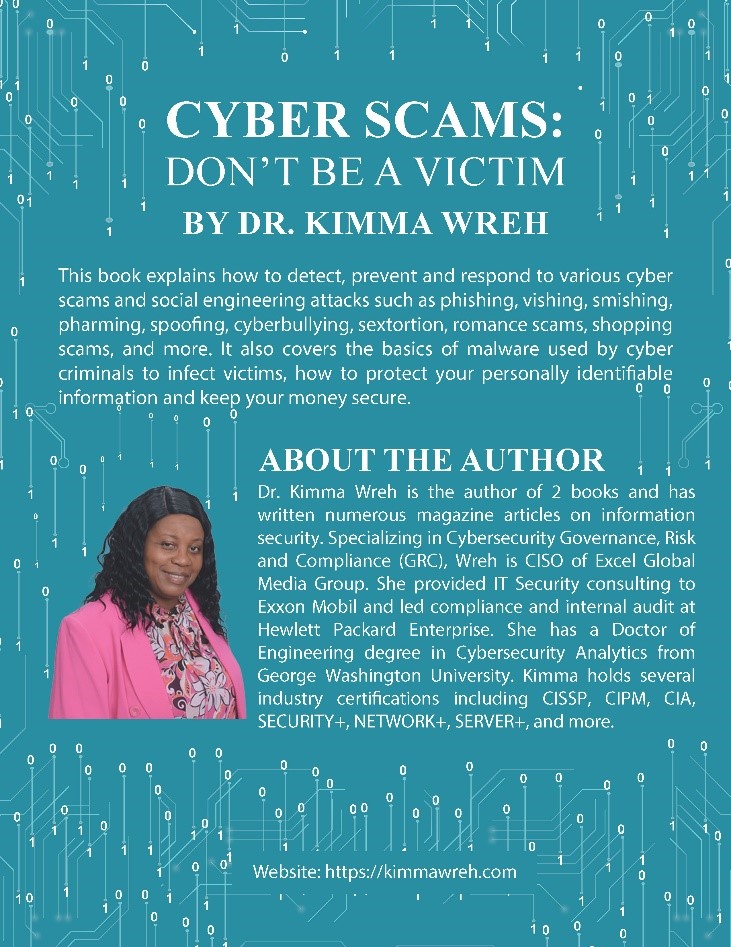 She is the author of “Cyber Scams: Don’t Be a Victim” and “Intro to Cybersecurity: Guide for Beginners”